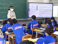 2年英語の授業の様子です。「Not very~(あまり~でない)」等のやわらかい否定表現について学習しました。
