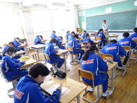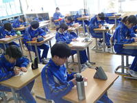 1年生の国語では、さくらももこさんの随筆「二十歳になった日」を学習しています。成人式当日のエピソードを通して、作者が感じた「大人になること」への戸惑いや決意を読み解きました。生徒たちは、数年後の自分たちの姿を想像しながら、真剣に授業に臨んでいました。