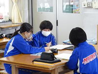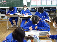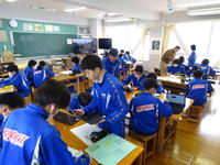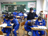 12月1日(月) 「自律した学習者の育成」を目指し、校内研修の一環とし、1年数学「平面図形の見方を広げよう」の研究授業を実施しました。生徒たちは基本的な作図の利用して75°の角を作図する方法を考え、式や図を使って説明しました。