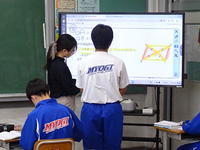 2年数学「平行四辺形」の授業の様子です。平行四辺形になるための条件を調べました。