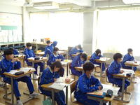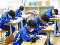 3年音楽の授業の様子です。男女のパートに分かれて「正解」の歌詞を確認しながら練習を行いました。