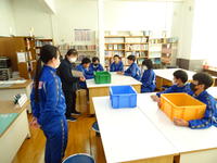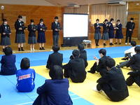 12月16日(火) 全校生徒が武道場に集まり、生徒会集会を行いました。今日は給食委員会よりお皿ピカピカ運動の取組について説明がありました。