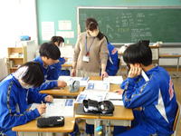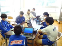 2年理科「気団と前線」の授業の様子です。前線が通過する前後の気象要素を資料から読み取り、関係について考えました。
