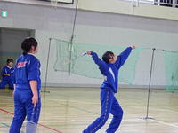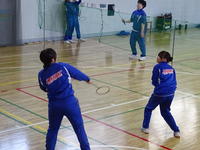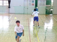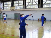 2年体育「バトミントン」の授業の様子です。今月末に実施予定のバトミントン大会に向けた練習が始まりました。
