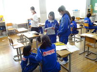 1年道徳「初めてのボランティア」の授業の様子です。ボランティアなど社会と関わることで得られるものは何かを考えました。