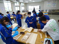 1年技術「接合」の授業の様子です。木材の接合の仕方について学びました。