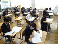 11月13日(木) 今日から2学期の定期テストが始まりました。初日の科目は理科、数学、社会、美術です。これまでの学習の成果を発揮しようと、生徒たちは真剣な表情でテストに取り組んでいました。