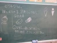 2年美術「ピクトグラム」の授業の様子です。ペンや消しゴム、定規などをピクトグラムで表現しました。