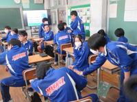3年生は5校時に富岡保健福祉事務所の方を講師としてお招きし、「エイズ予防教室」を実施しました。「水の交換ゲーム」で人から人へ感染するしくみを疑似体験しました。誰が感染しているか分からないことや検査しないと分からないこともありますが、正しい知識をもっていれば、自分で予防できることを学びました。