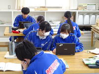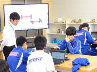 2年技術「機械が動く仕組み」の授業の様子です。機械はどのような仕組みで動いているのかリンク機構等について学習しました。
