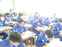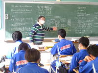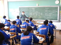 12月1日(月) 給食センターの栄養士さんをお迎えして、給食の時間に食育指導を行いました。いよいよ受験期を向かえる3年生を対象に「受験生の食事」をテーマに栄養の大切さについてお話をいただきました。