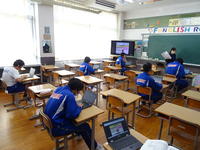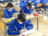2月10日(火) 来年度4月に実施予定の「全国学力・学習状況調査」に向け、2年生を対象とした英語の「話すこと・書くこと」に関する事前検証が行われました。2グループに分かれた生徒たちは、一人ひとりヘッドセットを装着後、タブレットから流れる問題に集中し、スピーキングとライティング、それぞれの課題に真剣な表情で取り組んでいました。本番に向け、ICT機器を活用した新しい試験スタイルにしっかりと向き合う姿が見られました。