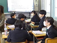 2月4日(水) 「自律した学習者の育成」をテーマとした校内研修の一環として、2年生英語の研究授業を実施しました。今回の題材は「日本を訪れたALTの家族に世界遺産の魅力をわかりやすく伝えよう」です。生徒たちは、日本の世界遺産の素晴らしさをより効果的に伝えるための紹介文作りに挑戦しました。自分たちで課題を解決し、より良い表現を追求するプロセスを通して、自律的に学習に取り組む姿勢を養いました。