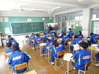 2年生の4校時は理科です。単元テストの見直しの後、「天気とその変化」の単元に入りました。「日本の四季の特徴は何だろう?」というテーマで、最初にそれぞれの季節「春・夏・秋・冬」について知っていることや感じているを出し合いました。