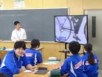 10月27日(月) 「自律した学習者の育成」を目指し、校内研修の一環とし、2年理科「神経のはたらき」の研究授業を実施しました。刺激を受け反応にかかる時間を調べ、神経のはたらきについて考えました。