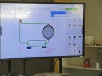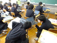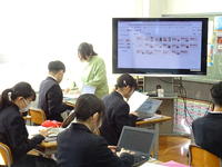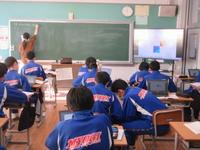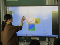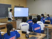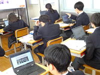 1時間目の2年生は技術科でした。「スイッチを切り替えるとLEDをつけたり消したりできるのはなぜか」というテーマで、タブレットの画面上で、電源やスイッチなどをつないで電気回路をつくるシュミレーションをしました。試行錯誤しながら何度も挑戦していました。