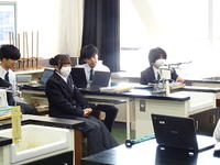 1年理科「弦の振動による音の大きさと高さ」の授業の様子です。音の大きさと高さにはどのような関係があるかを調べました