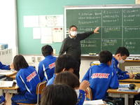 12月1日(月) 給食センターの栄養士さんをお迎えして、給食の時間に食育指導を行いました。いよいよ受験期を向かえる3年生を対象に「受験生の食事」をテーマに栄養の大切さについてお話をいただきました。