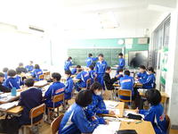 2年理科「色々な雲と天気」の授業の様子です。雲のでき方や雲の種類、天気との関係について学習しました。