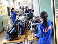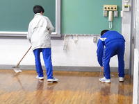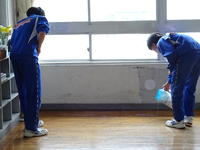 3月25日(水) 一年間お世話になった校舎への感謝を込めて、全校で大掃除を行いました。机や椅子、ロッカーや教室の床の汚れを落とし、仕上げは保健環境委員会が中心となり教室のワックスがけを行いました。教室はすっかり輝きを取り戻し、新年度を迎える準備が整いました。