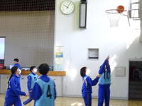 3年体育「バスケットボール」の授業の様子です。練習を重ねるごとにバスケットボールらしいプレーが見られるようになってきました。