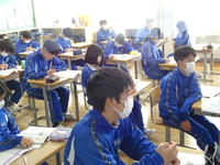 1年生の6校時は、冬休みの過ごし方について考えました。「毎日2時間以上勉強する」「ゲームはしすぎない」「部屋の掃除をする」「スマホの時間に注意する」など、それぞれ自分が考えためあてを意識しながら資料を読んだり、話をきいたりしました。