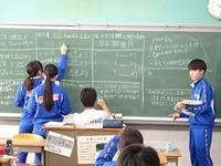 1年数学「空間図形」の授業の様子です。空間図形を面の移動という視点で考えました。