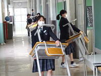3月25日(水) 一年間お世話になった校舎への感謝を込めて、全校で大掃除を行いました。机や椅子、ロッカーや教室の床の汚れを落とし、仕上げは保健環境委員会が中心となり教室のワックスがけを行いました。教室はすっかり輝きを取り戻し、新年度を迎える準備が整いました。