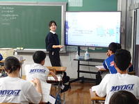 10月27日(月) 「自律した学習者の育成」を目指し、校内研修の一環とし、2年理科「神経のはたらき」の研究授業を実施しました。刺激を受け反応にかかる時間を調べ、神経のはたらきについて考えました。