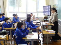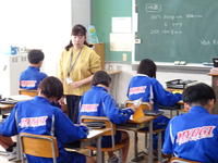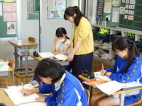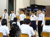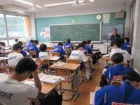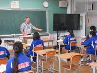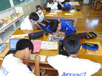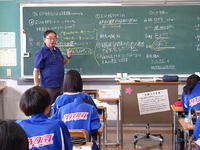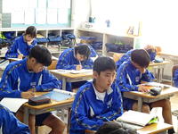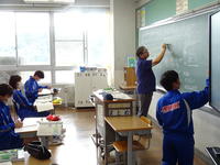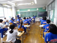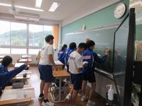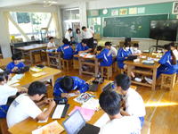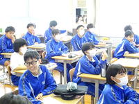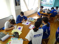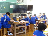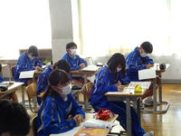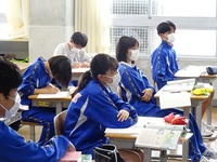 1年生は国語でした。「読み手の立場に立つ」というテーマで、方言と共通語の使い方について考えました。「方言が一番少ない都道府県はどこか?」という問いに対して、正答が意外なことに「なぜだろう?」と関心をもったようでした。
