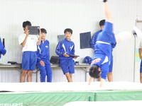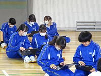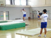 10月10日(金) 今年度妙義中学校では、「エージェンシーを発揮する自律した学習者の育成 ~個別最適な学びと協働的な学びの一体的な充実を通して~」をテーマに校内研修を進めています。今日はその一環とし、2年保健体育「マット運動」の研究授業を実施しました。生徒たちはICTを活用し、動画撮影やアドバイスをし合う中で、技の上達を目指しました。