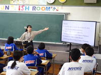 3年英語の授業の様子です。英語の文章のクイズに挑戦しました。
