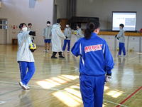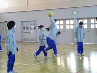 1年生の体育では、現在ハンドボールの授業に取り組んでいます。 凍てつくような寒さの中でしたが、生徒たちは元気いっぱい! この日は、パスからシュートまでの一連の流れを体験し、寒さに負けず懸命にボールを追いかける姿が印象的でした。