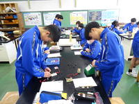 2年生の理科では、電流計の正しい操作方法と回路の特性について学習しました。直列回路と並列回路の各点における電流を測定し、その法則性を検証しました。知識として覚えるだけでなく、実際に回路を組み、計器で測ることで、電気の仕組みをより深く理解できたようです。