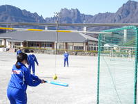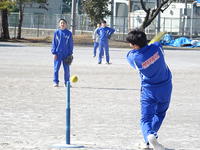 3年生のTボールの授業がスタートしました。 止まったボールを打つのは意外と難しく、最初は空振りしていた生徒も、力強いスイングを見せ、グラウンドに快音が響いています。 打ったら一塁へ全力疾走し、守る側も一生懸命にボールを追いかけます。